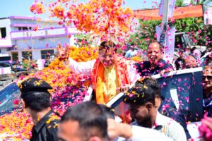 *मुख्यमंत्री का रोड शो में जनता व जनप्रतिनिधियों ने पुष्पवर्षा कर भव्य स्वागत किया।*