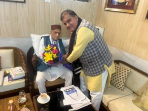 श्री जोशी के दिल्ली स्थित आवास पर हुई इस शिष्टाचार मुलाकात में उन्होंने कुशलक्षेम लेते हुए उनके स्वास्थ्य रहने की कामना की। इस दौरान मीडिया से बातचीत में उन्होंने श्री जोशी को महान संगठनकर्ता, विचारक और पार्टी कार्यकर्ताओं एवं स्वयं का मार्गदर्शक बताया। कहा, वे भाजपा और विशेषकर उत्तराखंड के गौरव हैं, जिनके दिखाए रास्ते पर राज्य और संगठन निरंतर तरक्की की नई ऊंचाईयों को छू रहा